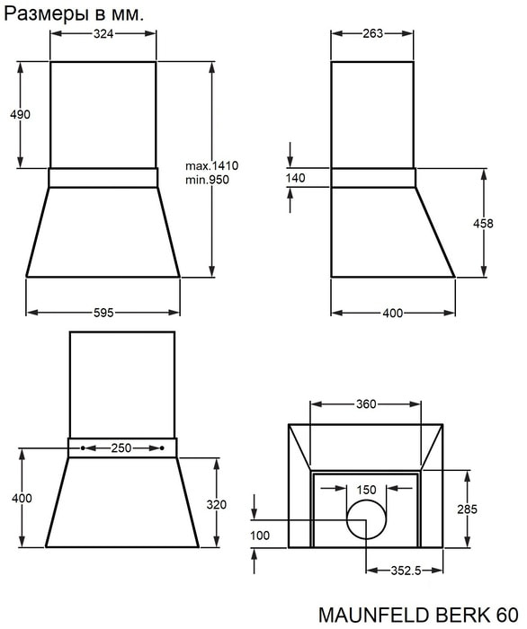 Высокая производительность и адаптивность: Мощный мотор обеспечивает продуктивность до 1270 м³/ч. Выдвижная конструкция корпуса позволяет регулировать высоту от 950 до 1410 мм для оптимального расположения над плитой. Установка — настенная, с возможностью перехода на режим рециркуляции при установке дополнительных угольных фильтров.