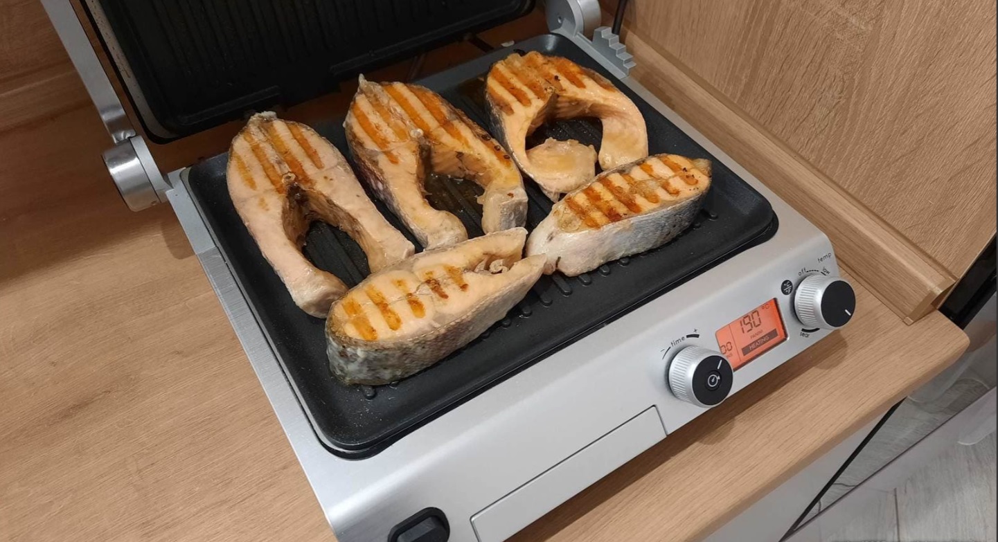 Современный электрический гриль мощностью 2 000 Вт из нержавеющей стали и закаленного стекла позволит вам почувствовать себя шеф-поваром на вашей кухне. Эта модель впечатляет не только внешне, по и порадует своим функционалом.
