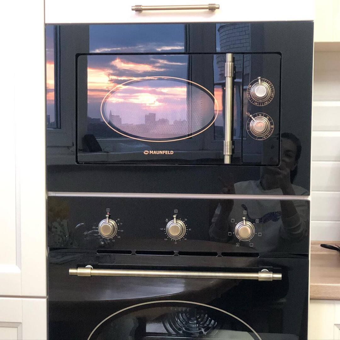 Фронтальная панель дверцы сделана из высококачественного жаропрочного стекла черного цвета. Цельнометаллическая фурнитура цвета "Бронза" идеально дополняет общий образ. Внутреннее покрытие камеры выполнено из специальной легкоочищающейся эмали черного цвета.