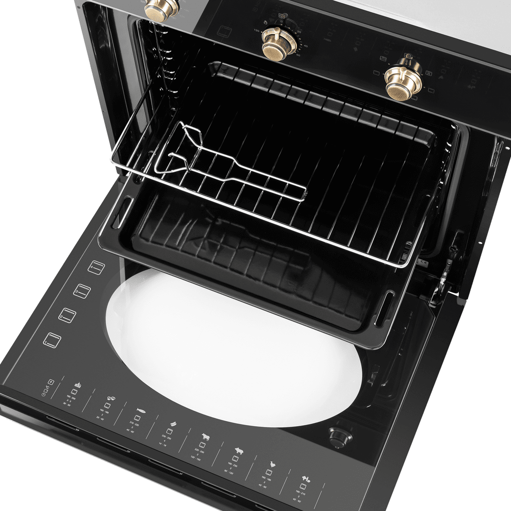 Элегантный электрический встраиваемый духовой шкаф, выполненный в ретро-стиле объемом 56 л и шириной 60 см. В данной модели предусмотрено 5 уровней боковых направляющих.