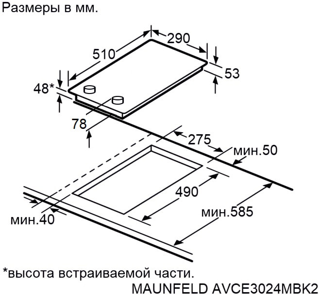 Ширина 29 см, глубина 51 см, высота 5,3 см – панель идеально подходит для узких столешниц, для установки рядом с газовой плитой в качестве дополнительной зоны или для компактных кухонь, где важен каждый сантиметр.