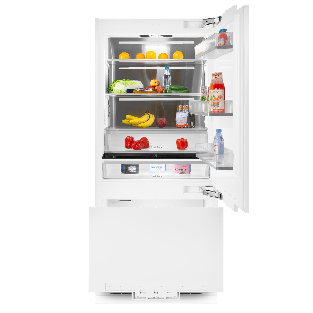 Ещё больше пространства для продуктов. Выдвижные ящики с зонами свежести стали ещё вместительнее. Морозильная камера с увеличенным объёмом на каждом уровне обеспечит простое и удобное хранение ваших продуктов.
