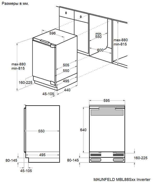 Корпус шириной 60 см сделан из металла. Внутренняя часть выполнена из антибактериального белого пластика легкой очистки. Предусмотрена возможность перенавешивания двери.