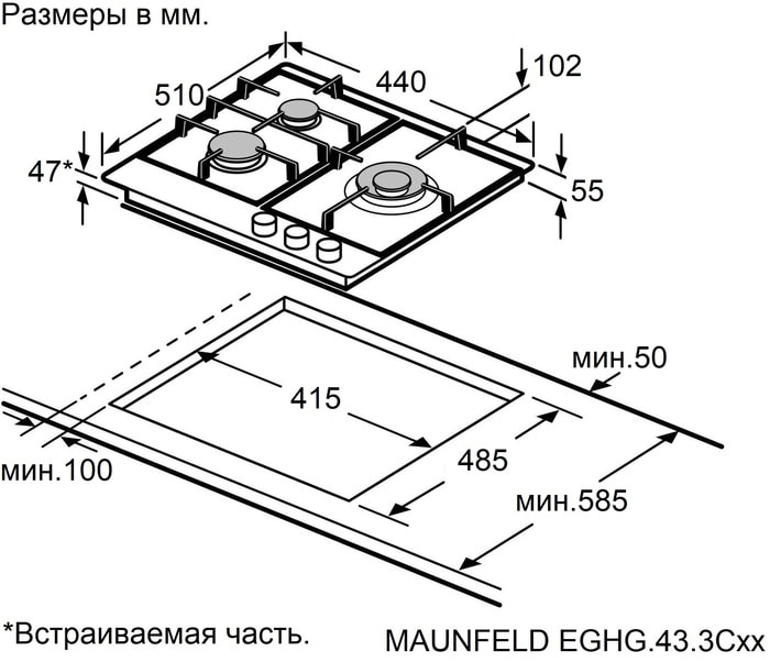 Эта модель — идеальное решение для кухонь с ограниченным пространством, где на счету каждый сантиметр. При компактной ширине всего 44 см она предлагает полноценную трёхконфорочную систему, не жертвуя мощностью и ключевыми функциями.