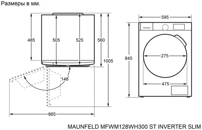 MAUNFELD MFWM128WH300 ST INVERTER SLIM — узкая стиральная машина, которая сочетает компактный формат и увеличенную вместимость. При глубине 52,7 см модель рассчитана на загрузку до 8 кг сухого белья, что делает её отличным выбором для семьи и регулярных стирок без переполнения барабана.