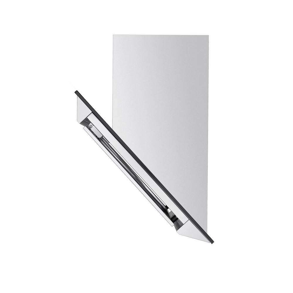 Стильная наклонная настенная вытяжка для большой кухни выполнена из нержавеющей стали. Элегантные боковые вставки из закаленного стекла. Электронное управление с дисплеем.
