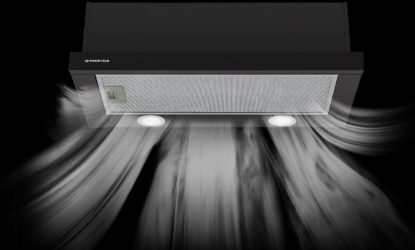 Уровень шума на максимальной мощности не превышает 47 дБ, ведь Maunfeld знает как сделать вытяжку действительно тихой и при этом эффективной