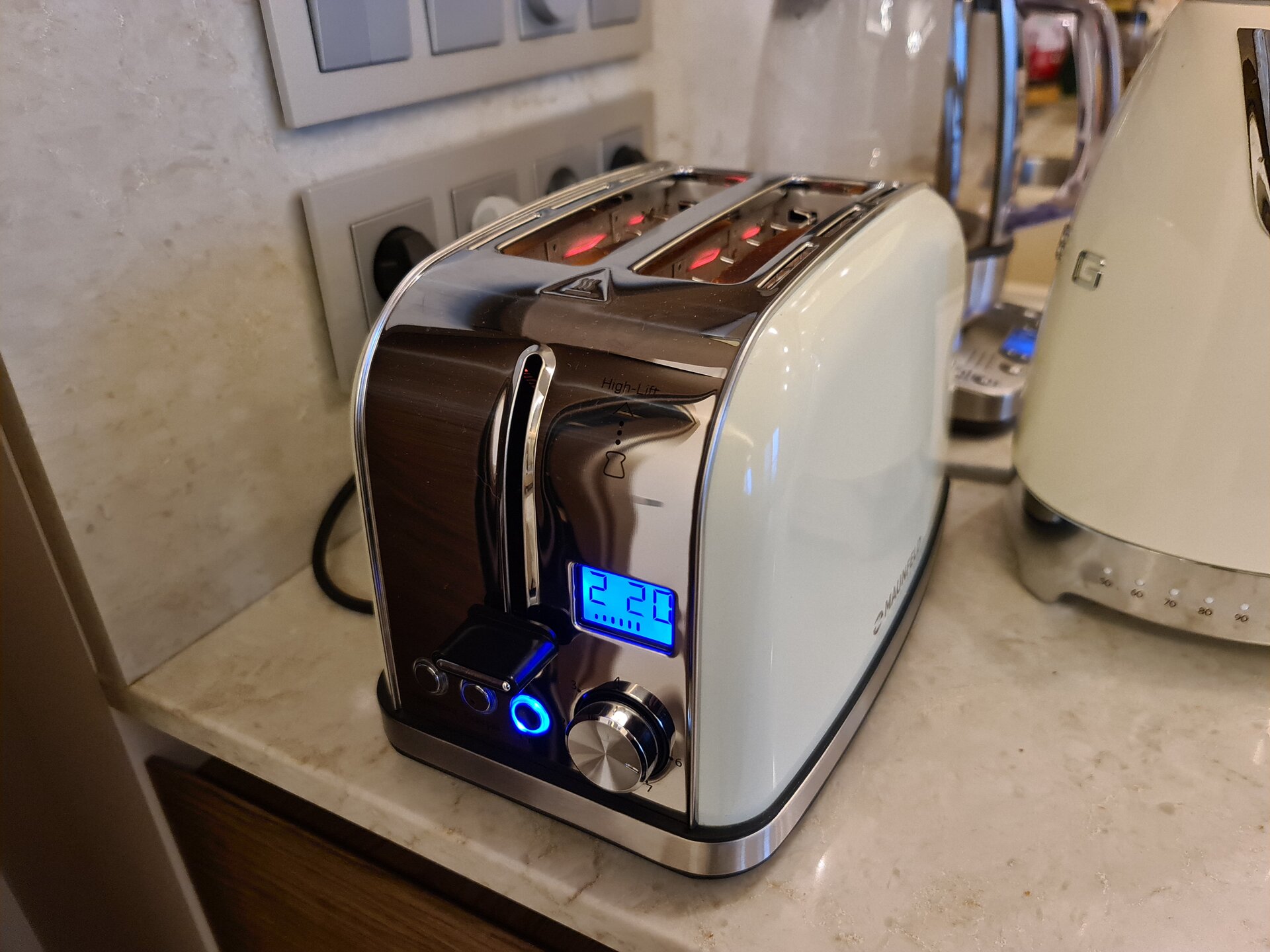 При приготовлении тостов с помощью регулятора выбираете одну из 7 возможных степеней обжарки, благодаря этому вы можете делать тосты из разных сортов хлеба (белого, зернового, черного и т.д.). Степень обжаривания отображается черточками на экране. Также на дисплее показывается обратный отсчет времени приготовления.