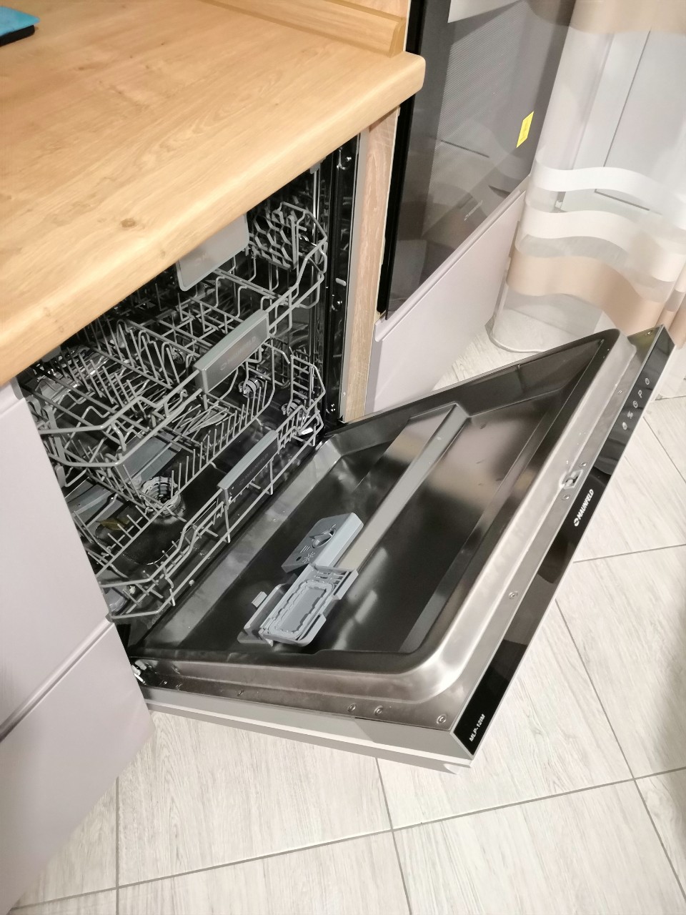 Для монтажа посудомоечной машины выберите место под установку, произведите замеры и подберите машину, подходящую по габаритным размерам. Делать это нужно с соблюдением инструкции по установке и размещению.