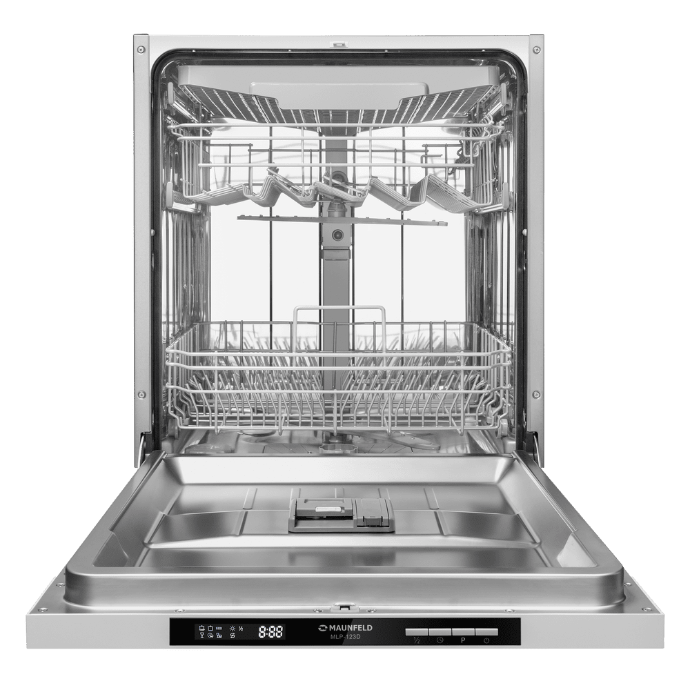 Благодаря использованию специально разработанных корзин и дополнительного выдвижного лотка для столовых приборов MLP-123D позволяет вымыть 14 комплектов посуды.